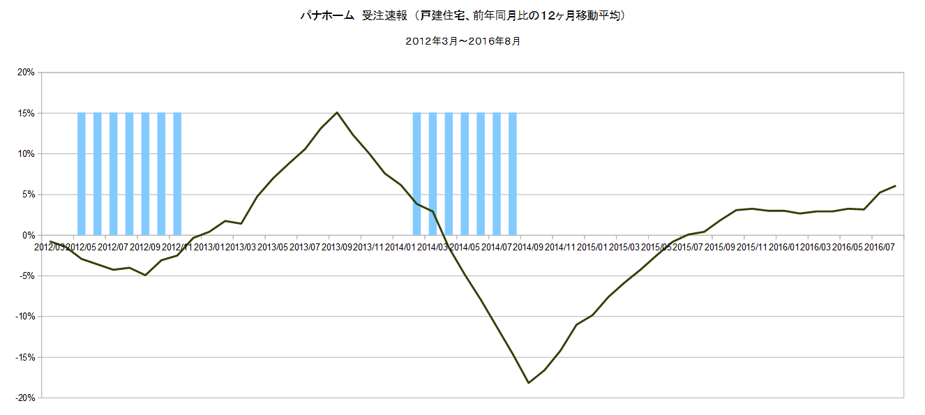 2016/8 パナホーム 受注速報 前年同月比 +0% ▼