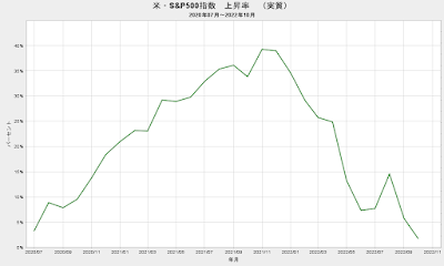 2022/10 米・S&P500指数 上昇率 (実質、2020/6~) +1.8% ▼