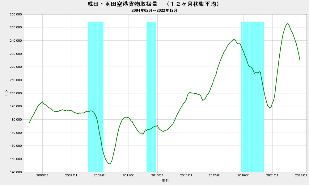 2022/12 成田・羽田空港貨物取扱量 -20.1% 前年同月比 ▼