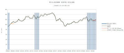 増加率・・・2009年5月(街角景気一致指数の反転)~2019年7月(逆イールド)